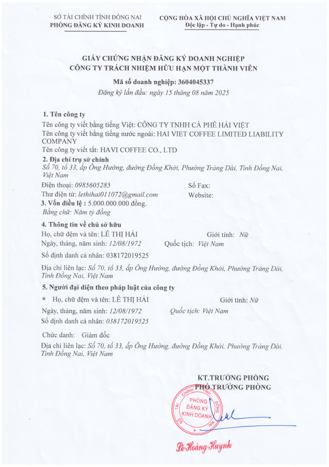CÔNG TY TNHH CÀ PHÊ HẢI VIỆT